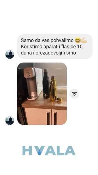 Iz prva smo mislili da se nećemo navići na ukus ali smo se prevarili. Uglavnom nema više plastike i teških paketa vode. Instalacija je jednostavna ali opet i može da bude malo teža u zavisnosti od potreba položaja samog aparata.